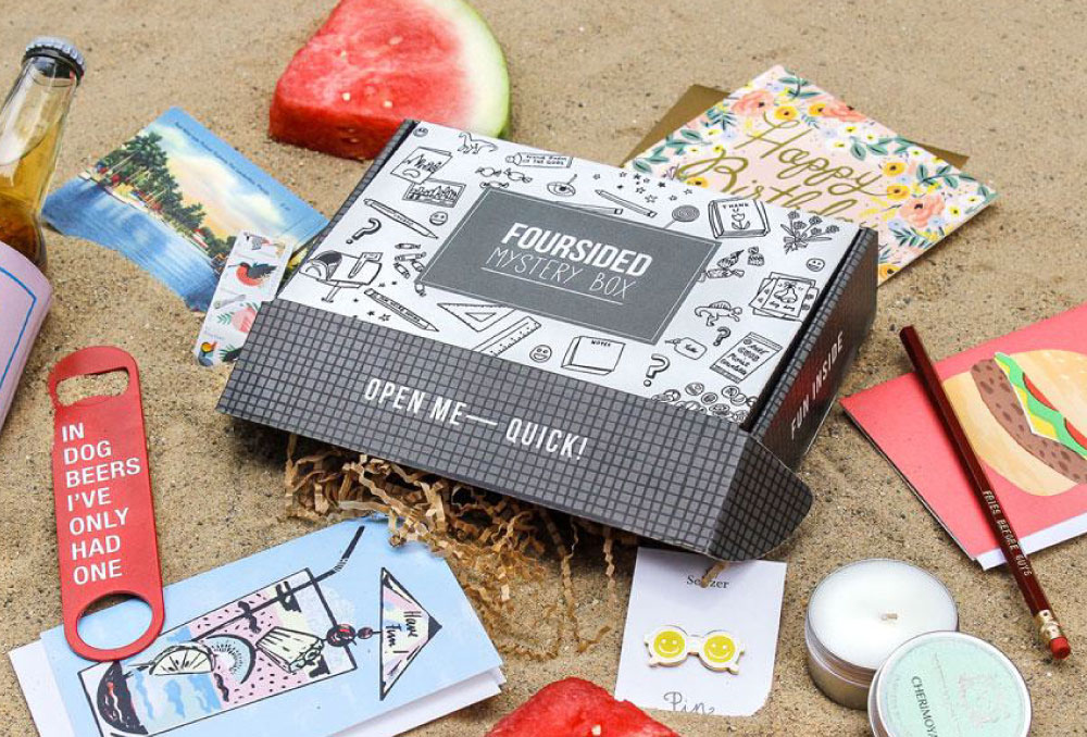 Foursided offers $5 Grab Bags in their shops and online which are a customer favorite. We wanted to expand this experiece to those who love the shop and want to experience a curated suprise monthly.