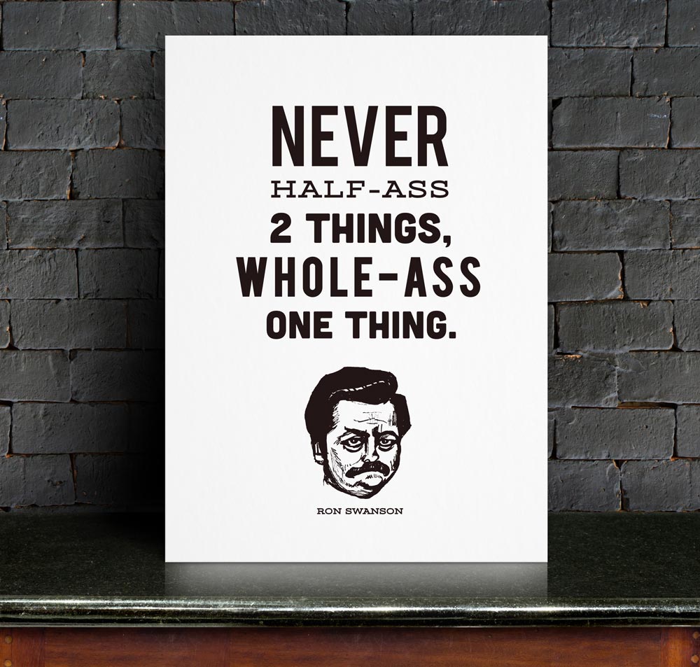 A personal passion project that turned into a nationally represented stationery line, I originally set out to make an inspiring print for a friend. Partnering with bestie and talented illustrator, Melanie Jeanne Plank, who crafted the perfect Swanson portrait. Taking cue from this portrait and paring it with carefully curated type, I screen printed a small first edition of 30. These were just for a few friends. However, word quickly spread and we ended up with lots of requests for their favorite Swanson quotes. We even met the mustachioed man himself, Nick Offerman, and gave him one of the originals to hang in his woodshop (or bathroom— whatever it’s his choice).